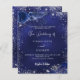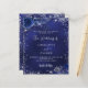 Um fundo azul marinho, decorado com falso brilho prateado, faíscas e flores azuis. A cor azul é irregular. Personalize e adicione seus nomes e detalhes. 1 folha = 1 convite impresso de borda a borda.