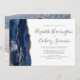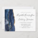 A borda esquerda deste elegante convite de casamento moderno apresenta um marinho azul de aquarela agata borda aparada com falso brilho dourado. O texto personalizável combina a escrita manual de cinzas de carvão, as fontes em copperplate e itálico em um fundo branco. Substitua facilmente a imagem de exemplo no verso por sua própria foto horizontal.