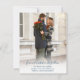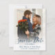 Foto do casal Salve o cartão de anúncio do casamento da data com informações do site, fonte azul do marinho.