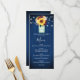 Estes cartões de cardápio apresentam um girassol de cor d'água e um design floral de borboleta com luzes de cordas em um fundo de grãos de madeira azul marinho. Personalize-os com o seu próprio texto. Visite nossa loja ou veja nossas páginas de coleta para ver a faixa de cheios de produtos correspondentes que você pode personalizar para o seu dia de casamento.