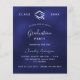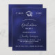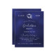 Um convite moderno e elegante para a festa de formatura. Um fundo azul marinho, texto branco. A cor azul é irregular. Personalize e adicione um nome, ano e detalhes.
