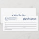 Certificado simples e profissional de presente comercial com um design minimalista com o logotipo no canto superior esquerdo, juntamente com as informações de contato em azul marinho sobre um fundo branco. O título "Certificado de Presente" e a mensagem "Um Presente para Você" no verso estão em uma fonte moderna de script de pincel. As fontes e as cores podem ser alteradas para qualquer usuário, clicando no botão "personalizar". Este certificado profissional de presente é excelente para um maquiador, cabeleireiro, salão de beleza ou spa.
