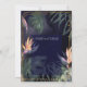 Este convite de casamento escuro e elegante apresenta uma bela cor d'água de fundo das plantas tropicais bordadas por um quadro de ouro com estrelas. O design cria um design único e espantoso, definindo o humor para um evento belo, escuro, mas elegante para qualquer casal que queira expressar seus gostos únicos enquanto ainda tem um evento elegante.