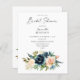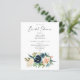 Economize dinheiro em convites com este convite menor que tem uma opção para envelopes. Prepare seus convidados para o maravilhoso casamento com este Marinho, Dusty Blue, e chá de panela Floral Cor-de-Rosa. Quer uma versão maior? Veja a nossa coleção de casamento para ver as cartas. https://www.zazzle.com/collections/navy_dusty_blue_pink_blush_floral_invitations-119375130976041409?rf=238937196885903396