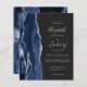 A borda esquerda deste elegante convite de casamento moderno apresenta um marinho azul de aquarela agata bordada com falso brilho prateado. O texto personalizável combina manuscritos, placas de impressão e fontes itálicas em cinzas prateadas sobre fundo escuro. O verso apresenta um design azul marinho e agate prateado correspondentes. NOTA: os envelopes não são incluídos automaticamente nestes convites de orçamento, portanto lembre-se de escolher a opção "envelopes brancos"!