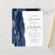 A borda esquerda deste elegante convite de casamento moderno apresenta um marinho azul de aquarela agata bordada com falso brilho prateado. O texto personalizável combina o script de cinza de carvão e as fontes sans serif em um fundo branco. O verso apresenta um design azul marinho e agate prateado correspondentes.