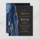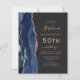 A borda esquerda deste elegante e moderno convite de aniversário 50º apresenta uma marinho azul de aquarela agate borda aparada com cintilação falsa rosa. O texto personalizável combina manuscritos rosa, copperplate e fontes itálicas em um fundo preto de ardósia. O verso apresenta um design marinho de agate azul e rosa dourado correspondente.