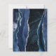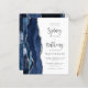 A borda esquerda deste elegante convite de casamento moderno apresenta um marinho azul de aquarela agata bordada com falso brilho prateado. O texto personalizável combina o script de caligrafia de cinza de carvão e sans serif em um fundo branco. O verso apresenta um design azul marinho e agate prateado correspondentes.