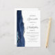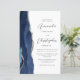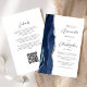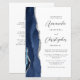 A borda esquerda deste elegante convite de casamento moderno apresenta um marinho azul de aquarela agata bordada com falso brilho prateado. O texto personalizável combina o script de cinza de carvão e as fontes sans serif em um fundo branco. O verso fornece espaço para detalhes do casamento em um fundo branco sólido, junto com um código QR que os convidados podem digitalizar para visitar seu site e RSVP, o que economiza o custo de imprimir e enviar cartões RSVP separados.