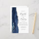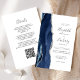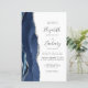 A borda esquerda deste elegante convite de casamento moderno apresenta um marinho azul de aquarela agata bordada com falso brilho prateado. O texto personalizável combina manuscrito, copperplate e fontes itálicas em cinzas de carvão em um fundo branco. Adicione mais detalhes no verso, juntamente com um código QR para ajudar seus convidados a visitar seu site de casamento.