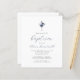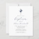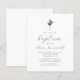 Este elegante convite batismo apresenta um buquê de aquarela de flores azuis e marinhos poeirentas e folhagem prateada numa cruz de folha de folhas prateada, acima das palavras "junte-se a nós para o batismo do nosso filho" em elegante marinho azul caligrafia e cinza de carvão itálico. Personalize-o com o nome no script azul e os detalhes na fonte de sans da cinza.
