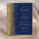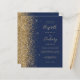 A borda esquerda deste elegante convite de casamento moderno apresenta uma borda falsa de ouro. O texto personalizável combina manuscrito colorido de ouro pálido, fontes copperplate e itálico em um fundo azul marinho. O verso apresenta um design marinho azul e dourado correspondente.