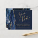 Este elegante orçamento salva a placa de data apresenta uma borda azul-marinho agate com cor d'água cortada com brilho dourado falso. O texto personalizável combina um script de escrita manuscrita dourado, fontes copperplate e itálico em um fundo azul marinho. O verso apresenta um design azul-marinho e um agate-ouro correspondentes.