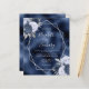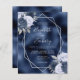 Este elegante convite de casamento moderno apresenta um quadro geométrico prateado decorado com buquês florais azuis, marinhos e prateados empoeirados num fundo de folha azul marinho. O texto personalizável combina a escrita manual imétrica de cinzas prateadas, a placa de cobre e as fontes itálicas. Adicione mais detalhes no verso, juntamente com um código QR para ajudar seus convidados a visitar seu site de casamento.