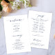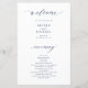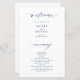 A moderna e simples tipografia minimalista tende a cerimônia branca limpa e o programa de casamento do barato do BUDGET, com modelo de uma tenda cômica com um roteiro de caligrafia azul-marinho escuro. +++++++++++ Fácil de personalizar com o seu texto personalizado em ambos os lados!