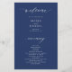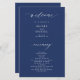 A moderna cerimônia azul de tendências minimalistas da tipografia marinho e o programa de casamento do barato BUDGET, partido e partido, modelo com um roteiro de caligrafia. +++++++++++ Fácil de personalizar com o seu texto personalizado em ambos os lados!