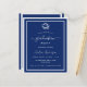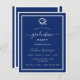 Um moderno, elegante e convite. Um fundo azul marinho decorado com quadros brancos e um boné branco. Personalize e adicione um nome e detalhes da parte. Texto branco.