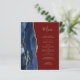 A borda esquerda deste elegante cardápio moderno de casamento apresenta uma marinho azul de aquarela agata bordada com falso brilho dourado. O texto personalizável combina um script de escrita manuscrita dourada e fontes de impressão em fundo vermelho burgundy. O verso apresenta um design azul-marinho e um agate-ouro correspondentes.