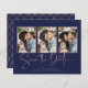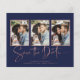 MARINHO de Arte Azul Rosa de Deco de Arte Dourada Manuscrito Salve a Data com Vários Cartões com fotos em uma fonte elegante e evoca um toque romântico manuscrito. Na parte de trás está um design de estilo geométrico, estilo deco de arte, em folha de rosa de ouro cônica, sobre um fundo azul marinho. Projetado para usar três de suas fotos favoritas para personalização adicional. Adicione facilmente seus nomes e datas para um design verdadeiramente personalizado. **O nosso documento sobre o orçamento é mais pequeno e mais delicado, mas ainda é bonito! Não se esqueça dos envelopes!** Se você precisar de ajuda ou itens correspondentes, entre em contato conosco em cedarandstring@gmail.com