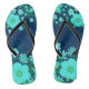 Marinho De Tela Tropical E Chinelos De Turquesa