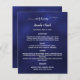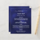 Um clássico cardápio de casamento. Um fundo azul marinho. A cor azul é irregular. Texto branco. Personalize e adicione seu nome, data e menu. Você pode adicionar mais texto, fotos no verso. 1 folha = 1 menu impresso borda a borda.