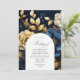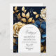 Convite de casamento floral de marinho e ouro personalizável para suas especificidades de evento.