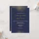 Um toque de poeira ouro sobre um fundo Marinho adiciona um olhar elegante a este Convite de Casamento. O texto inicial inclui: Nomes de noiva e noiva, data de casamento, localização e recepção. O reverso é realçado com ouro estelar no Marinho. Para personalizar, basta inserir seus detalhes em nosso modelo fácil, substituindo o texto de exemplo. Certifique-se de ver o Marinho inteiro e a Dourada Coleção de Casamentos de Stardust para peças correspondentes.