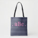 O marinho perfeitamente formal e o seersucker cor-de-rosa brilhante listraram a sacola monogrammed customizável