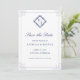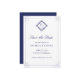 Anuncie seu casamento em estilo eterno com este clássico azul marinho Salve o cartão de data. Apresentando caligrafia elegante, fontes serif simples e um layout limpo, este design dá o tom para uma celebração formal. Personalizável e fácil de editar.