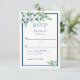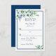 Este Cartão RSVP de Casamento Elegante e Casamento Branco é projetado em flores brancas e azuis suaves em um fundo branco com borda azul. O inverso é um fundo azul correspondente. Para personalizar com sua Resposta por Data, basta inserir sua Data em nosso modelo fácil do texto de exemplo. Visite toda a Coleção de Casamentos Brancos e Marinhos Elegantes.