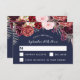 Marinho Fall Marsala Blush Peony Wedding RSVP Cards - apresenta um fundo azul marinho com várias peônias, rosas e outros elementos florais em tons de Marsala, burgundy, rosa azul, cinza e muito mais. Consulte a coleção correspondente nesta página para concluir a procura do evento.