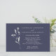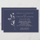 Um convite de casamento refinado e moderno, com um elegante fundo azul-marinho e uma delicada arte floral branca. A tipografia serif limpa traz sofisticação do eterno, enquanto o layout se sente fresco e contemporâneo. Ideal para casamentos clássicos, formais ou noturnos, esta design é fácil de personalizar com seus detalhes e estabelece um tom polido para sua celebração.