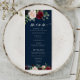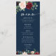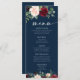 Boho Marinho Burgundy e Blush Wedding Menu Card. Este cardápio é caracterizado por boho burgundy e rosas e flores embaçadas com duas fontes modernas de alta classe que moldam as tendências dos eventos festivos atuais e futuros.