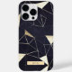 este caso apresenta um padrão geométrico de impressão metal-minimalista, azul-marinho-escuro e ouro-antigo metálico simulado, com caixa de ouro mais baixa e texto personalizável com letra sans serif minimalista fina