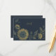 Compartilhe informações essenciais de casamento em estilo com este elegante cartão de detalhes de girassol. Projetada para coordenar com o pacote de casamento marinho e ouro, esta placa apresenta o mesmo motivo de girassol gravado e a mesma tipografia sofisticada, perfeita para transportar acomodações, transporte, código de vestimenta ou links de sites. Os sotaques refinados de marinho e ouro trazem uma sensação de eterno e rústica para a sua papelaria de casamento.