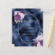 Este elegante convite de casamento moderno apresenta uma estrutura geométrica prateada decorada com buquês florais lilás, roxas e prateadas num fundo azul marinho. O texto personalizável combina a escrita manual imétrica de cinzas prateadas, a placa de cobre e as fontes itálicas. Adicione mais detalhes no verso, juntamente com um código QR para ajudar seus convidados a visitar seu site de casamento.