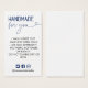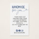 Instruções de lavagem inserem cartão para sua pequena empresa de bens feitos à mão. Feito para você, escrito em uma charmosa combinação de fonte e roteiro antigos com um coração em azul marinho. Adicione instruções de lavagem a preto. Abaixo dos marinhos de ícones azuis das mídias sociais, as suas redes sociais lidam com isso.