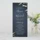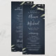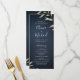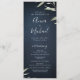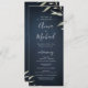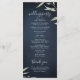 Design de folhagem botânica com cor aquática mínima moderna em fundo azul-marinho moody, simples e elegante com nomes de caligrafia, cartões de programa de casamento com excelente redondo para casamento moderno, casamento rústico e casamento de jardim botânico no verão e cair à noite. Ver todas as peças correspondentes na coleção
