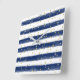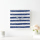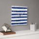 Este relógio quadrado chic tem um fundo listrado azul e branco de cor d'água marinho com uma mistura de confete de ouro simulado por cima. Se precisar de assistência, envie um e-mail para niteowlstudio@gmail.com.
