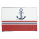 Âncoras azuis de marinho náutico com faixas azuis vermelhas e marinhos sobre fundo vermelho e branco. Itens correspondentes disponíveis em nossa loja.