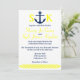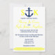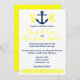 Um convite temático náutico do casamento no marinho e no amarelo. Uma âncora está na parte superior do convite, com as iniciais dos noivos de cada lado. Na parte inferior é um amarelo design trançado colorido da corda. A parte traseira é um amarelo contínuo com uma âncora do marinho no canto.