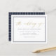 Pensando em ter um casamento com temas náuticos? Este simples convite elegante é perfeito para você. Apresentando uma borda dupla em azul marinho contra um fundo branco limpo. "O casamento de" é exibido em um roteiro de caligrafia em folha de ouro falso. Sua informação de casamento aparece na tipografia serif minimalista. Inverter para um padrão de verificação contra uma cor de marinho. Como parte da seleção do orçamento aqui no Zazzle, esses convites vêm em tamanhos limitados e estoques de papel. Se você precisar de um tamanho ou estoque de papel diferente, esse design pode ser transferido para um formato padrão 5x7 usando a ferramenta de transferência design para obter mais opções.