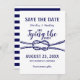 Casamento náutico moderno salve o cartão de data com uma aparência limpa e minimalista, com o marinho clássico e as cores brancas, um modelo de personalização fácil de usar. Perfeito para fuzileiros, salões, iates, barco, praia ou casamentos de verão.
