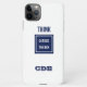'Think' numa cor de marinho fora da caixa, que contém as palavras 'fora da caixa'. Um lembrete para os negócios e para a vida. O sucesso vem não seguindo a multidão, não fazendo o óbvio, mas inovando. Personalize este caso com as iniciais para criar o monograma.