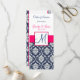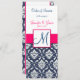 Programas de serviços de igreja personalizáveis. Programa da Igreja de Casamento Rosa Quente e Damasco Azul Marinho. Personalize com suas informações pessoais e informações da cerimônia.