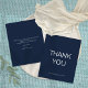 Marinho simples de orçamento Cartões de agradecimentos personalizado azul. Um valor para o alternativo menor de 4,5 x 5,6 polegadas é usado como padrão para a opção de semigloscópio, que é recomendada para convites e é de espessura semelhante a um cartão postal. A opção Satin é um PAPEL MUITO MAIS FINO. Cartões de agradecimentos Personalizado Branco Preto Simples de Orçamento. Um design totalmente personalizável. Mude facilmente as palavras. A cor e o tipo da fonte podem ser alterados através do menu de edição. Você também pode alterar as cores do texto e do plano de fundo em ambos os lados, se desejar.