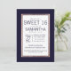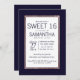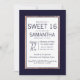 Frente moderna, simples e elegante imprimiu esboço de pinstripe rosa em azul e branco marinho, convites de festas de celebração de 16 anos doce. Este design clássico e sofisticado é perfeito para a garota de aniversário de classe, tendências e na moda. Personalize com sua própria mensagem na frente e um monograma personalizado inicial no verso. Todas as impressão de fotos.