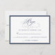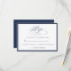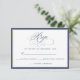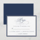 Placa RSVP de caligrafia aquática elegante moderna. Design com script RSVP em letra manuscrita e detalhes no escrevendo moderno. O reverso da placa está em cor sólida de marinho. Personalize o texto da data de resposta no modelo de texto fácil de usar.