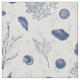 Tecido branco e marinho com conchas e algas marinhas. Estilo gráfico ilustrativo com textura aquosa. Um padrão delicioso e elegante com as vibrações do verão.