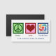 Estes cartões magnéticos personalizáveis de logotipos empresariais apresentam a insígnia da sua empresa junto a um bonito sinal verde de paz e coração vermelho para o Natal. Personalize com seu logotipo profissional e outro texto personalizado para o marketing.